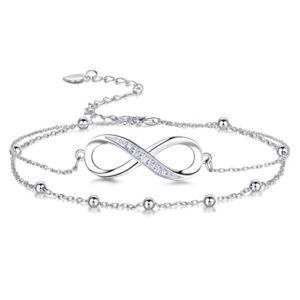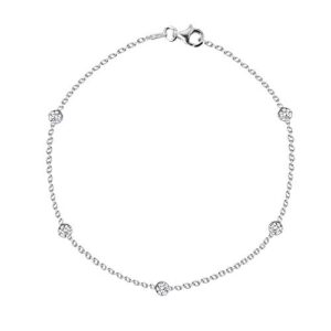Sterling Silver Mini 3mm Cubic Zirconia CZ By the Yard Station Anklet Anklet Bracelet, 10″, 11″