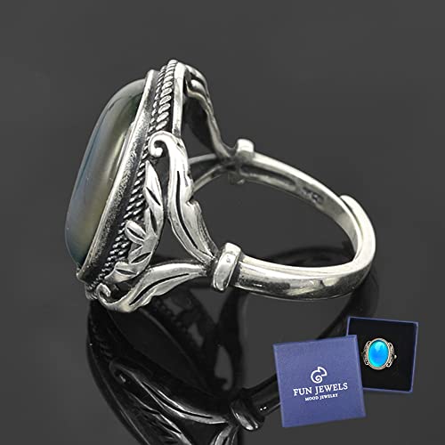 • DESIGN: A large looking Antique Style Oval Mood Ring, Bezel Size: 22mm(W) x 19mm (L), suitable for one who loves statement ring. The ring is made of 925 sterling silver with an antique silver finish. It’s a highly appealing piece of jewelry that you are sure to get many compliments on. Each ring is given attention to detail, individually polished and is comfortable to wear. The ring has adjustable band, can fit most of the fingers. Our Jewelry is nickel and lead free!