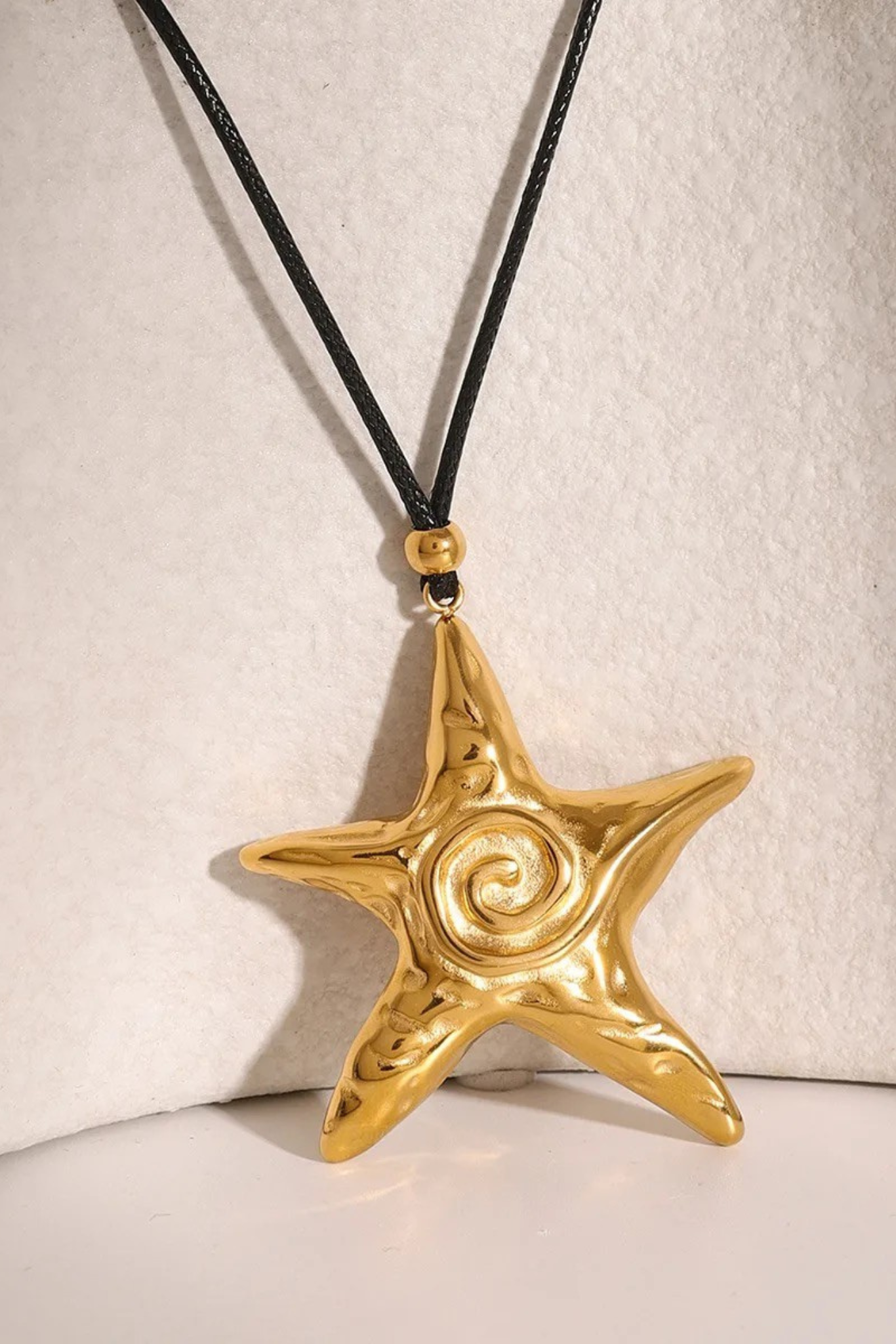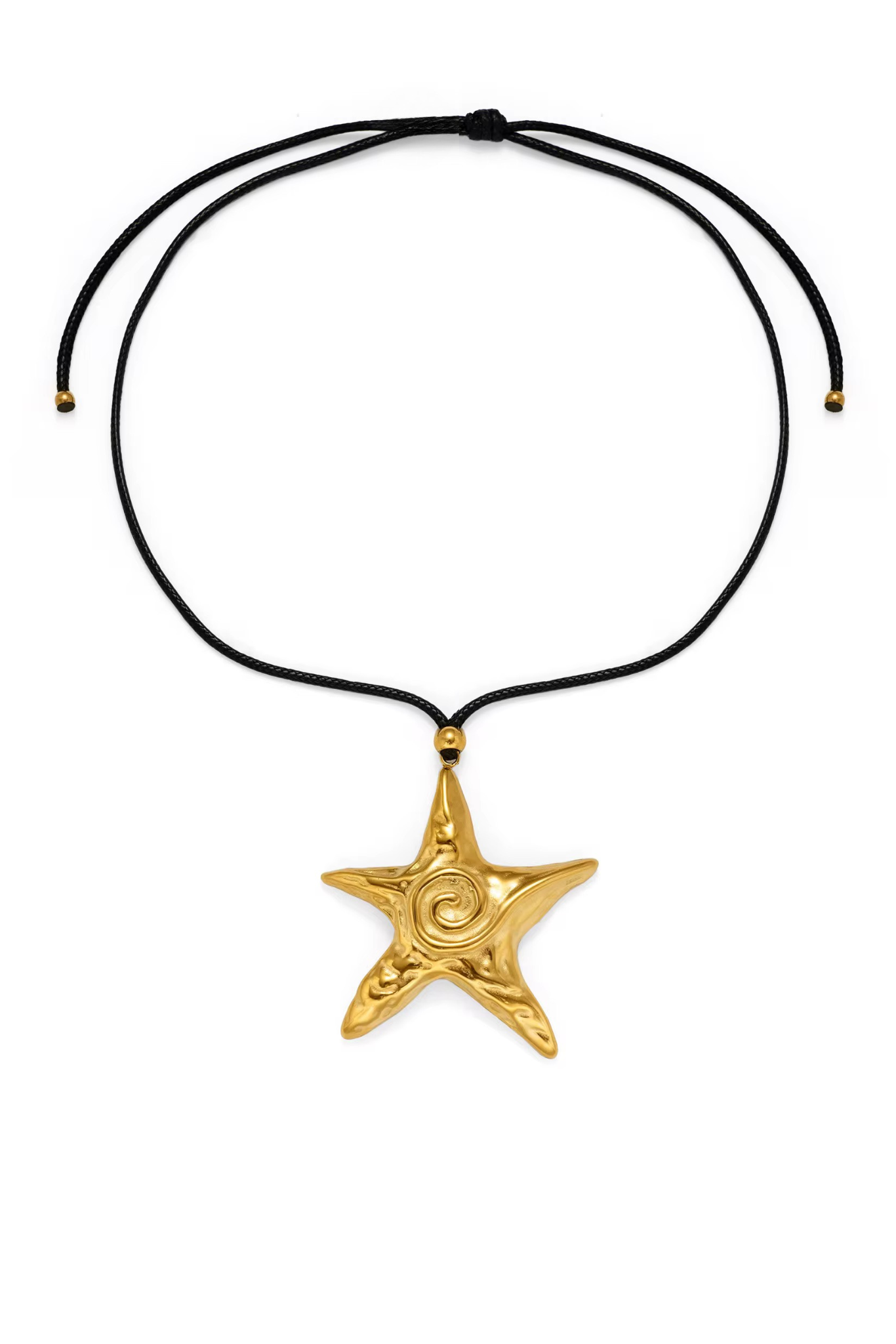 Adorn yourself with the Dalaia 18k Gold Plated Starfish Pendant Cord Necklace. The stunning spiral design evokes a sense of fluidity and movement, as if it just washed ashore from the sea. Wear this luxurious necklace as a reminder of endless summer days and carefree seaside escapes.