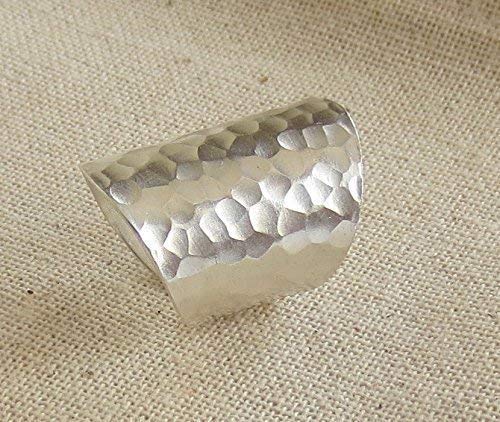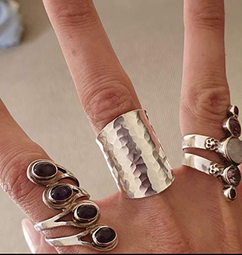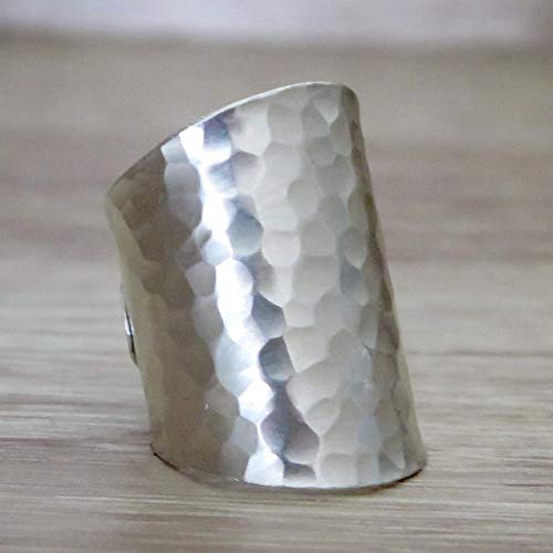 Hammered Shiny Sterling Silver Large Long Boho Statement Ring, Wide Band Wrap Adjustable to Sizes 6-12,Also as Thumb Ring, Gift for Her