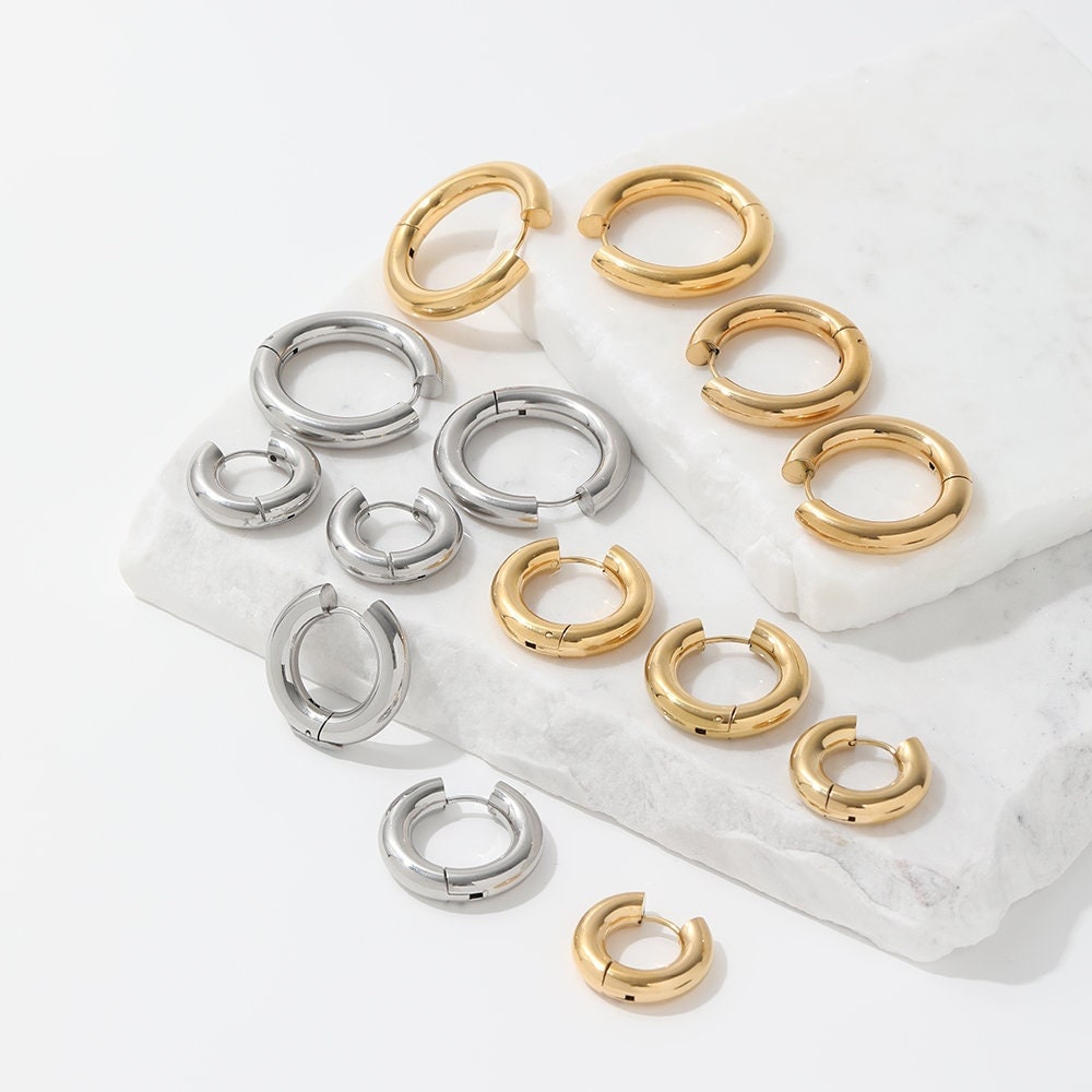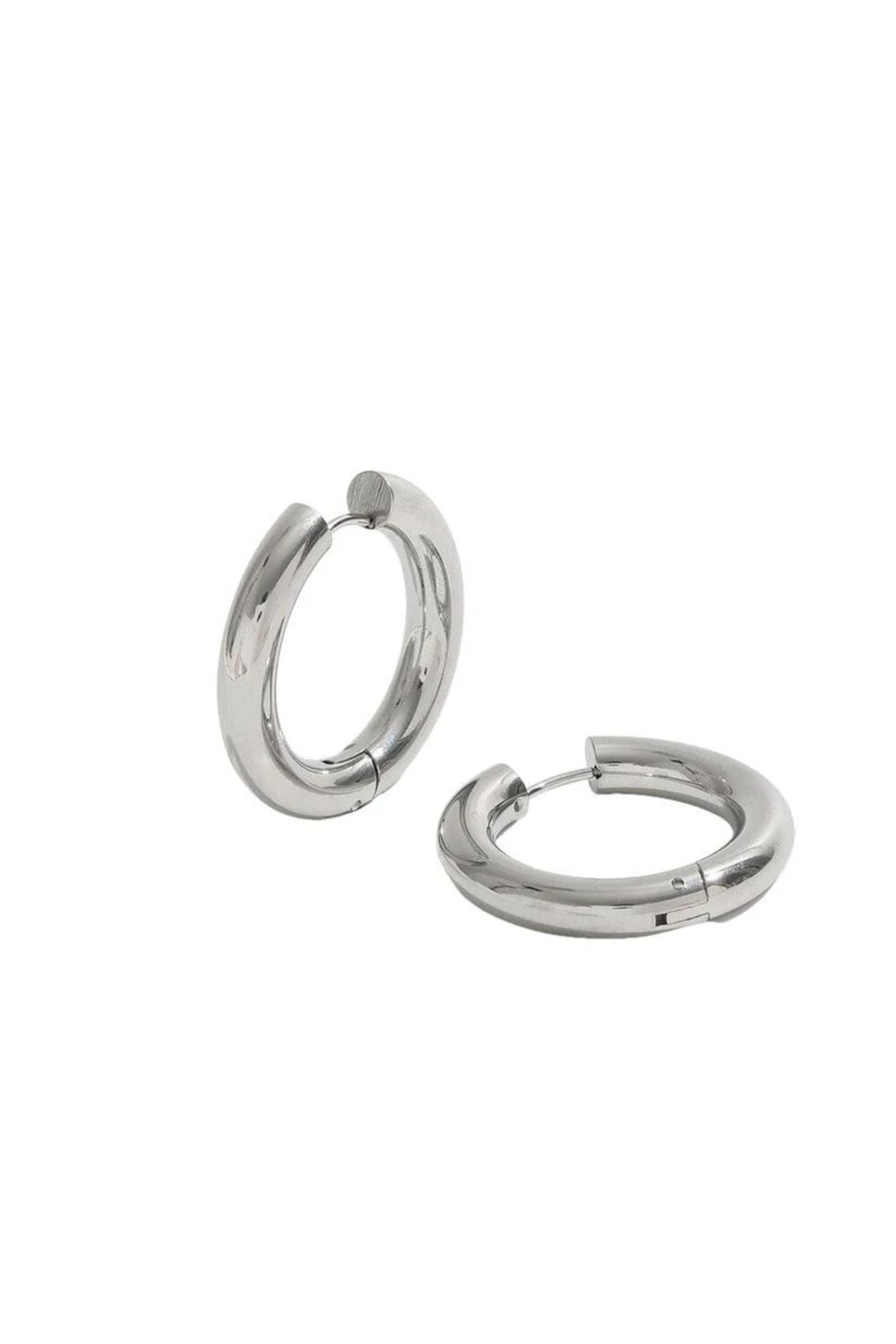 The Naxos Silver Chunky Hoop Earrings are elevated to the next level with their stainless steel finish. They feature a chunky hoop for a look that’s both classic and stylish. These minimalist hoops are an elegant yet edgy addition to any ear-drobe.