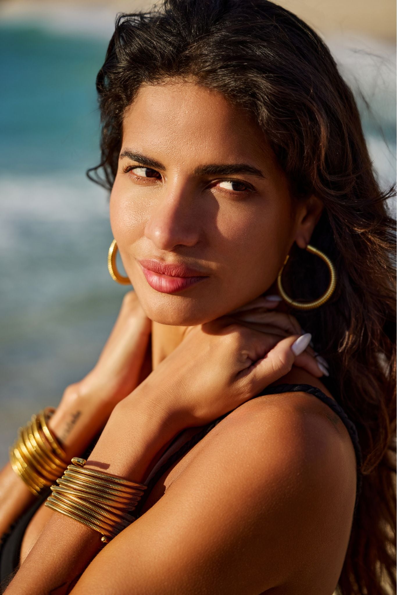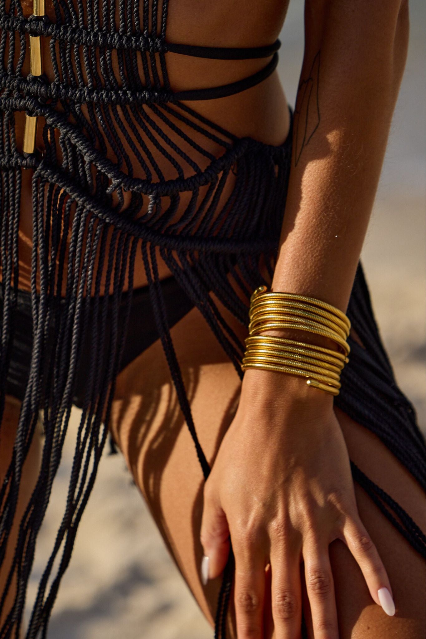 Adorn your wrist with our Rayna 18k Gold Plated Flex Snake Chain Wrap Bracelet that will give you that sun-kissed glow wherever you go. With its unique flex feature and multi-layered design, it effortlessly wraps around your wrist for a perfect fit.