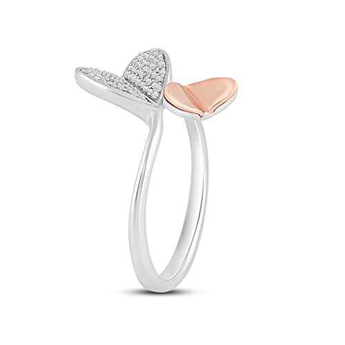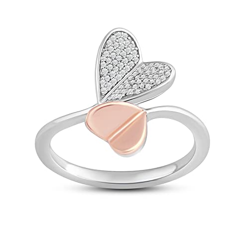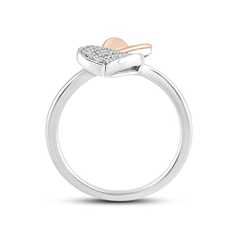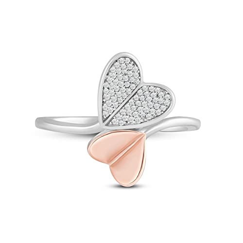 Twin Hearts Ring for Women | Sterling Silver & 10K Rose Gold Band | Natural White Round Diamond | Ring Size 7 | Hallmark Jewelry Gifts for Women | Gift Box Included