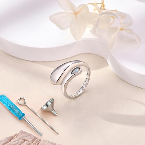 - [Gift Packing] Dainty design ashes ring jewelry is packed in a beautiful gift box with a silver cloth and funnel filler kit. This urn ring is a unique way to remember your loved one or a thoughtful gift for someone grieving.