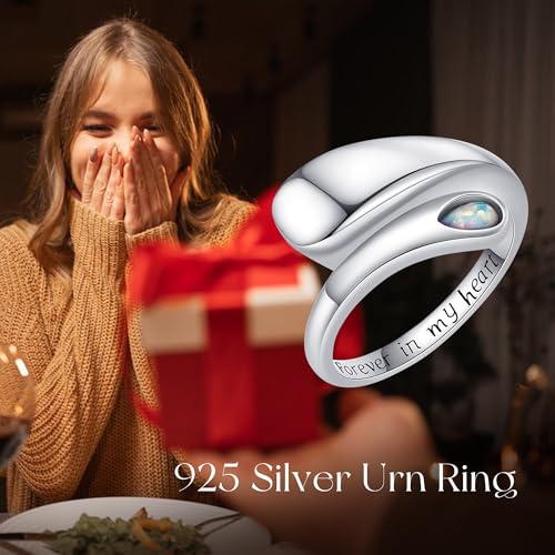 Urn Ring for Ashes Sterling Silver Opal Ash Ring Memorial Cremation Jewelry Bereavement Keepsakes Gift for Loss of a Loved One Size 8